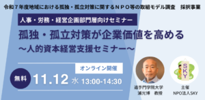 【特定非営利活動法人SKYより】孤独・孤立対策×人的資本経営セミナーのご案内