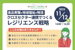 【全国食支援活動協力会より】食品寄贈×地域福祉×物流 クロスセクター連携でつくる、レジリエンス戦略(11月12日開催)   全国食支援活動協力会より、イベントのご案内がございました。 基調講演として、食品ロス問 […]